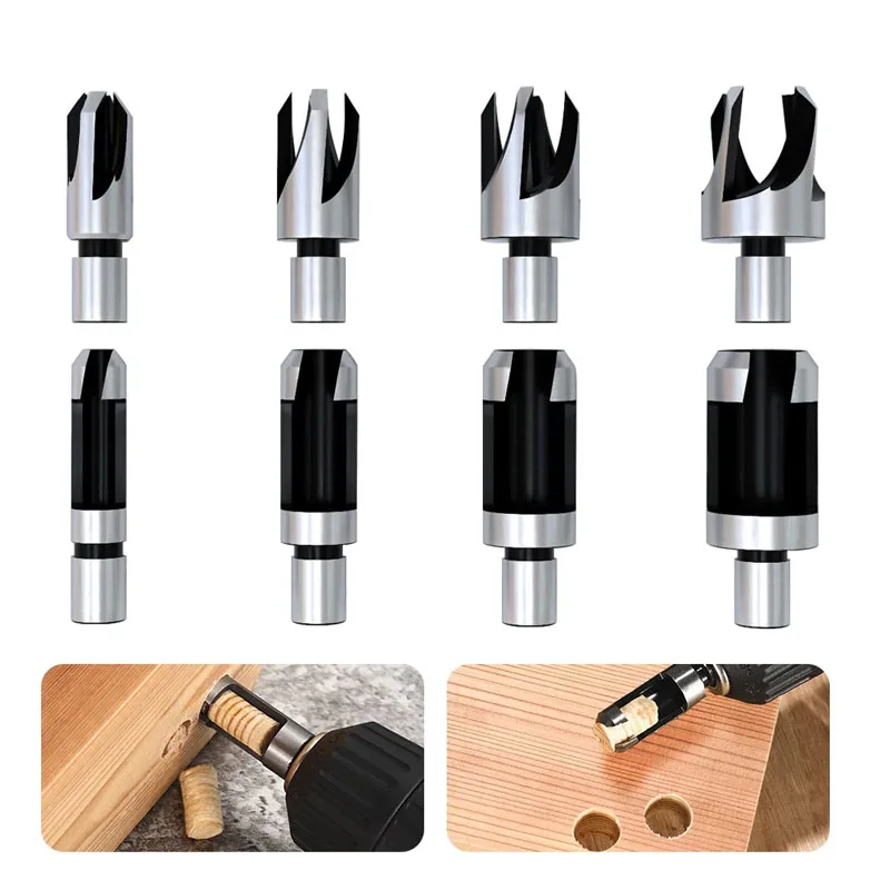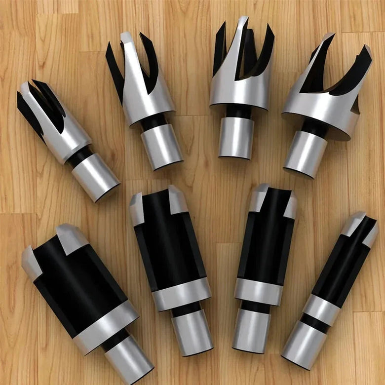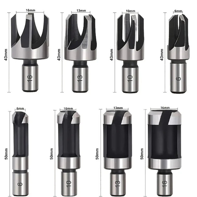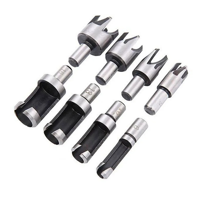 • 8 Pcs Carbon Steel Wood Plug Cutter Set Woodworking Drill Bits Round Shank Straight and Tapered Taper Cutting Tool