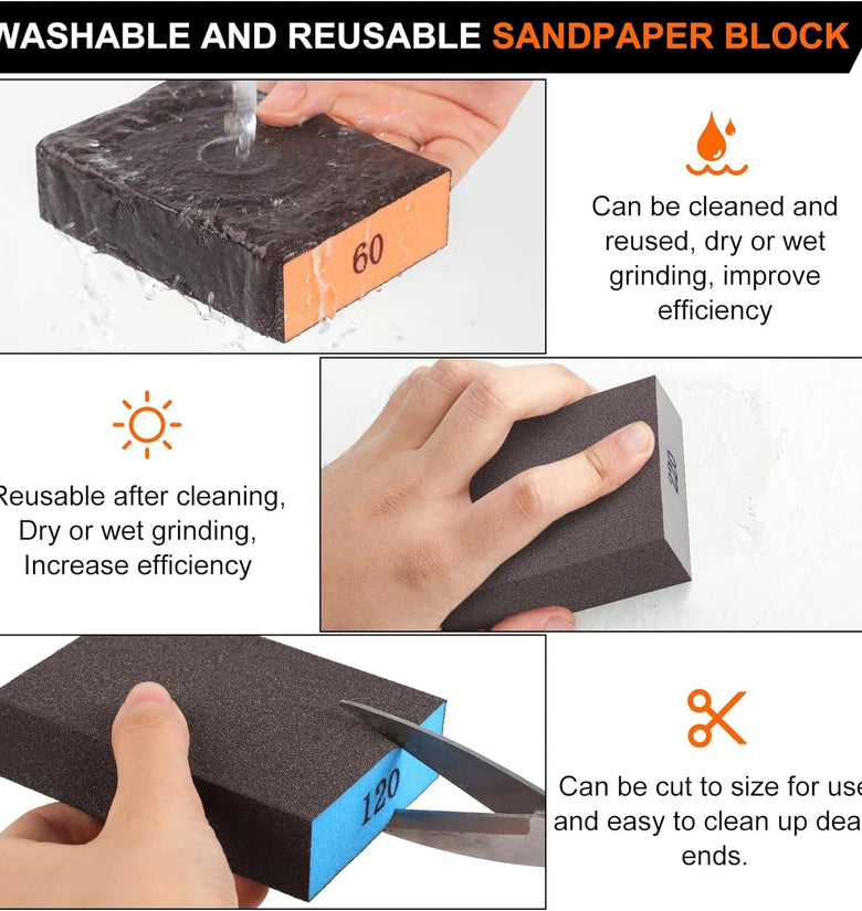 4. Washable and Reusable: Designed to be used both wet and dry, these sanding blocks are perfect for regular and repeated use. Easily washable to maintain cleanliness, these sponges offer consistent, reliable performance.