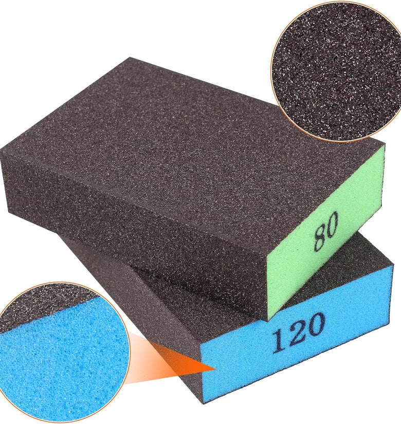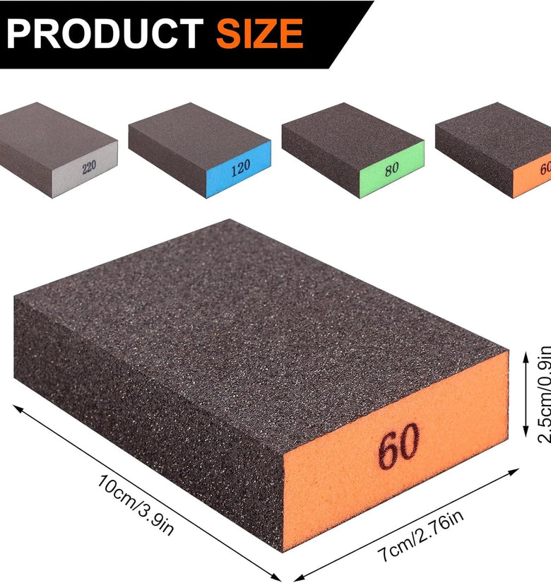 5. Color-Coded for Convenience: Each grit size is color-coded—grey for 220 grit, blue for 120 grit, green for 80 grit, and orange for 60 grit—making it easy to quickly identify and select the perfect sponge for your task.