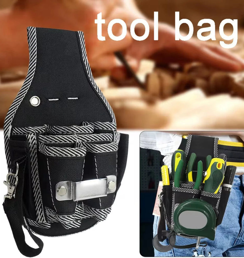 • 9 Pocket Electrician Tool Bag 600D Nylon Fabric Waist-Hanging Reinforced Edges Versatile Utility Pouch for Professionals