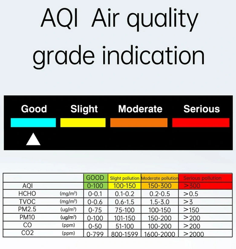 Air Quality Indication: The device uses color-coded air quality levels to provide an intuitive, visual representation of the air quality in your environment, enabling you to understand the air conditions more accurately.
