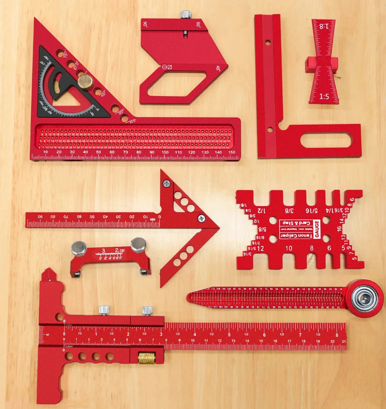 1.Multi-purpose woodworking kit: This 9-piece set includes an array of tools catering to diverse woodworking tasks, ensuring precision and versatility in applications like measuring, marking, layout design, and sharpening.