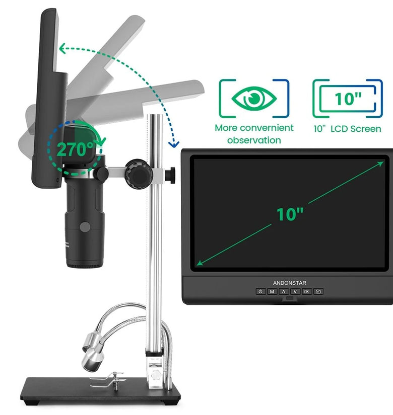 The angle of the microscope display can be adjusted to facilitate multi-angle observation.