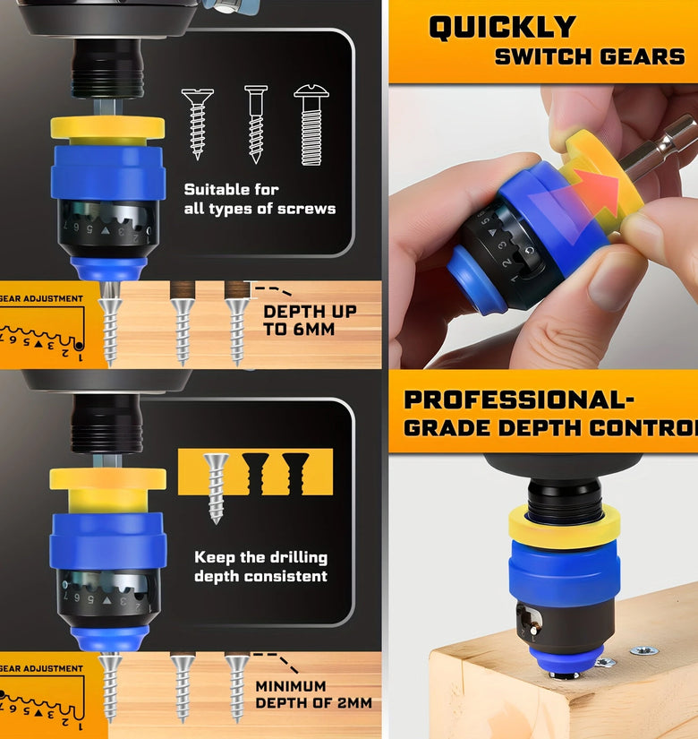 1.Precise Depth Adjustment: With 7 adjustable positions ranging from 2mm to 6mm, this tool ensures consistent and accurate drilling depth every time.
