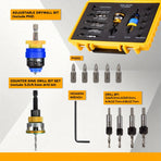 Adjustable Depth Countersink Drill Bit Set with 5 Tungsten Carbide Drill Bits Hex Shank Professional Woodworking Tools Toolbox Packed for Precise Drilling