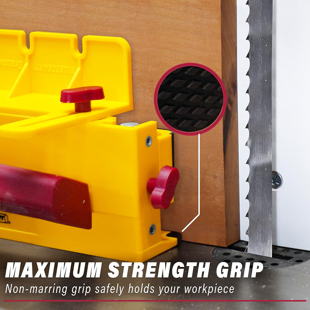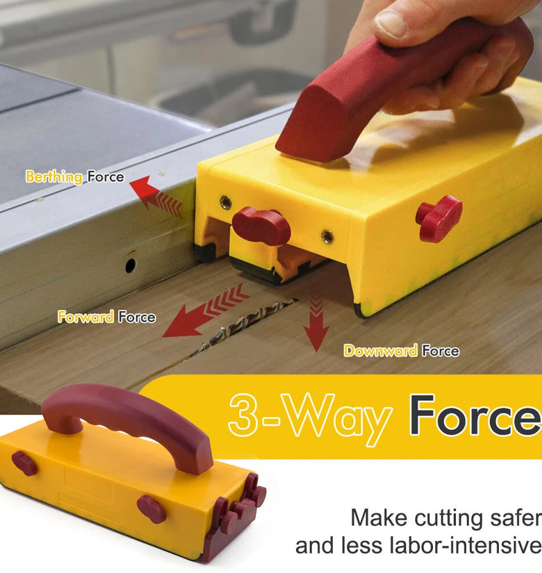 Provides forward, downward, and inward pressure to reduce kickback and increase cutting stability, ensuring safe and accurate cuts for table saws and router tables.
