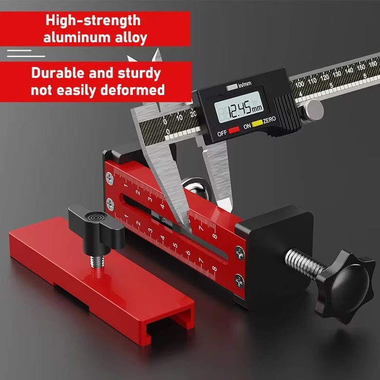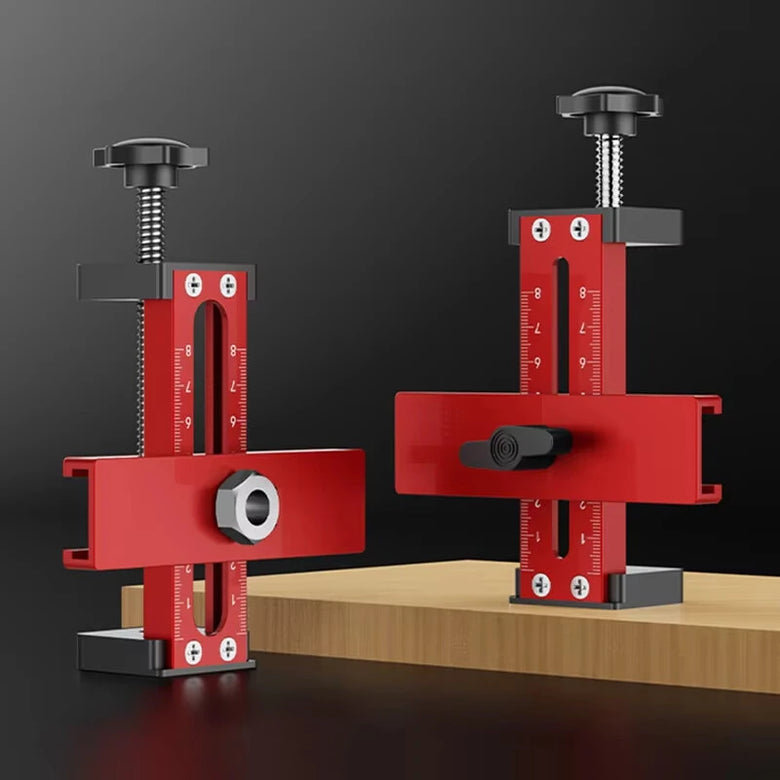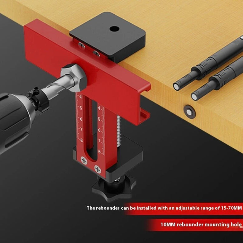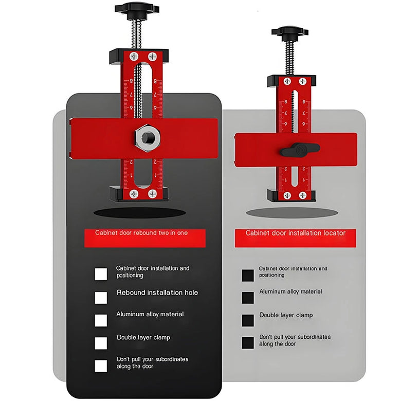 • Adjustable Woodworking Cabinet Door Installation Jig Aluminum Alloy Quick Positioning 2-in-1 Device 0-75mm Thickness 15-70mm Rebound Drilling Tool