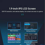 A portable design with a vibrant 1.9’’ IPS LCD screen displaying real-time measurement data with intuitive user controls.