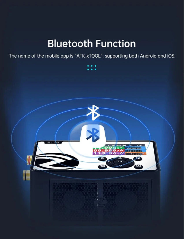 Supports a voltage range of 0.1V to 60V and a current range of 0A to 12A, accommodating multiple battery types and projects.
