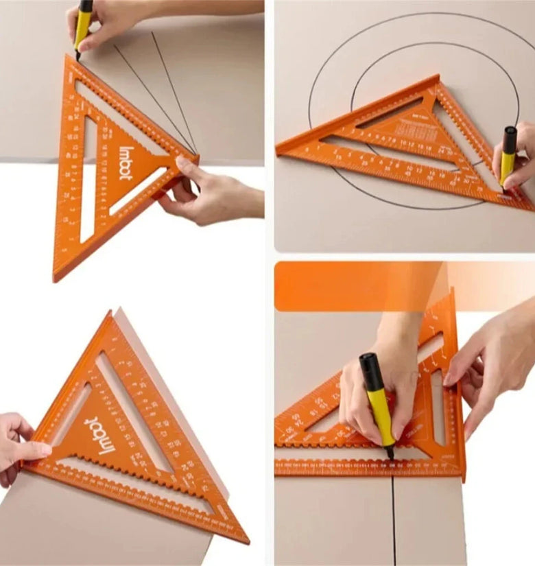 • Aluminum Alloy Carpenter Precision Woodworking Triangle Measuring Ruler Rafter Square Measuring Layout Tool Multi-angle Woodworking Scriber Circle Drawing Metric Scale