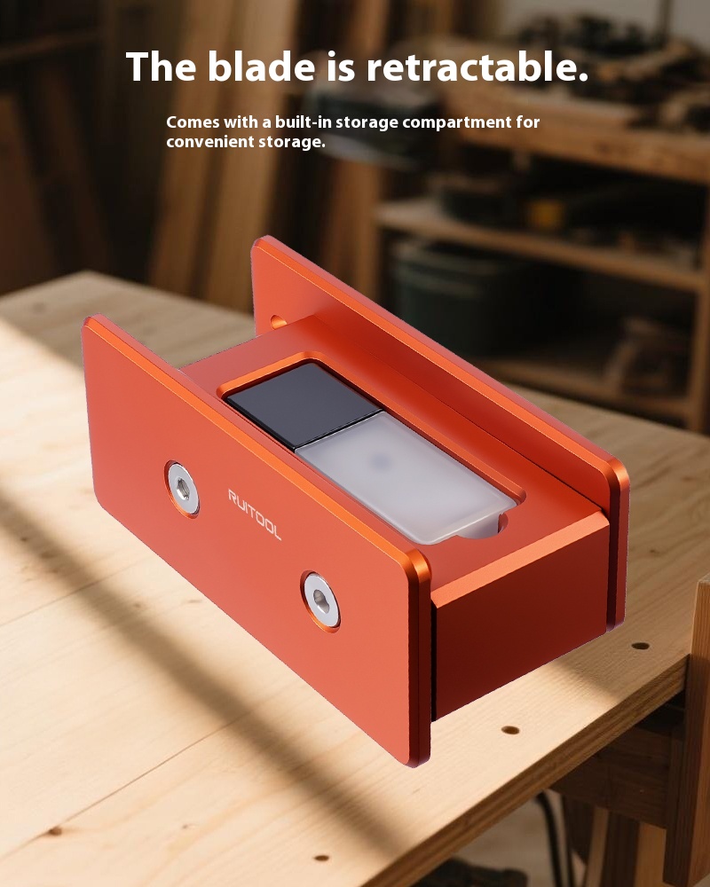 Features a top storage compartment for extra blades, ensuring safety and convenience during use and blade replacement.