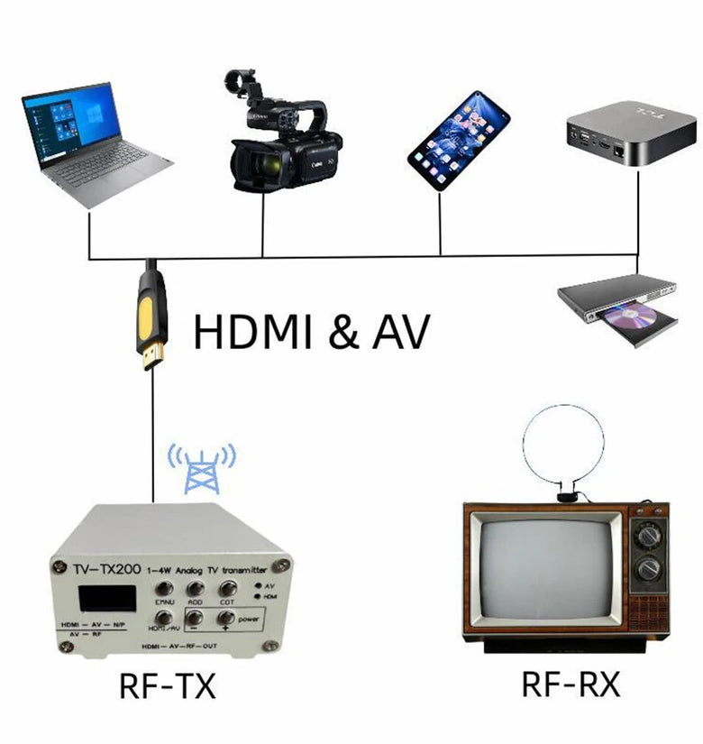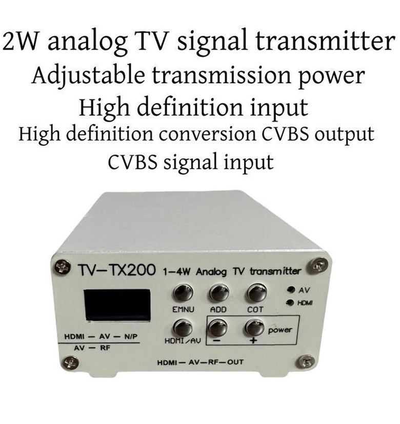 • Analog TV Signal Transmitter 0.5W-2W Adjustable Power Aluminum Alloy HDMICVBS VHF UHF Wireless Video Transmission