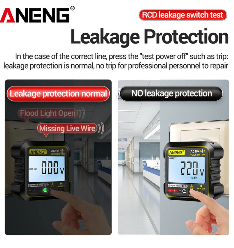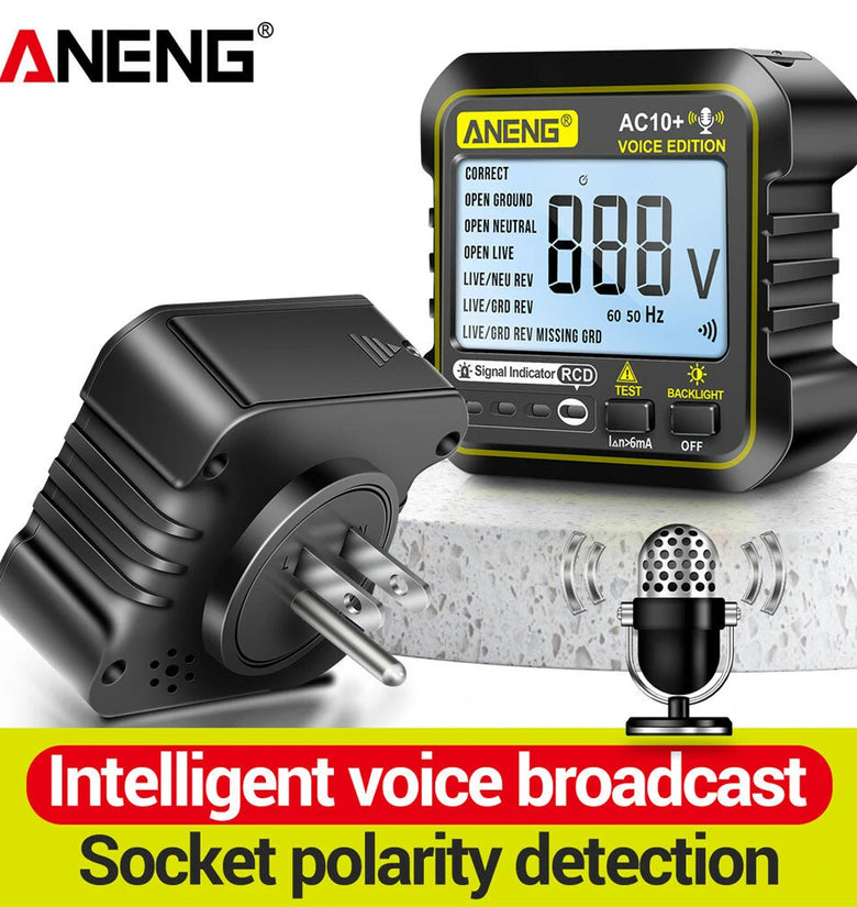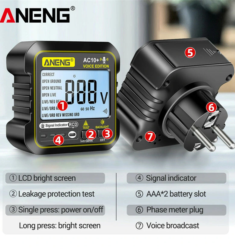 • ANENG AC10+ Digital Display Socket with LCD Screen Voice Broadcast Leakage Protection Phase Meter Plug For Reliable Performance- Ideal for Standard Power Outlets