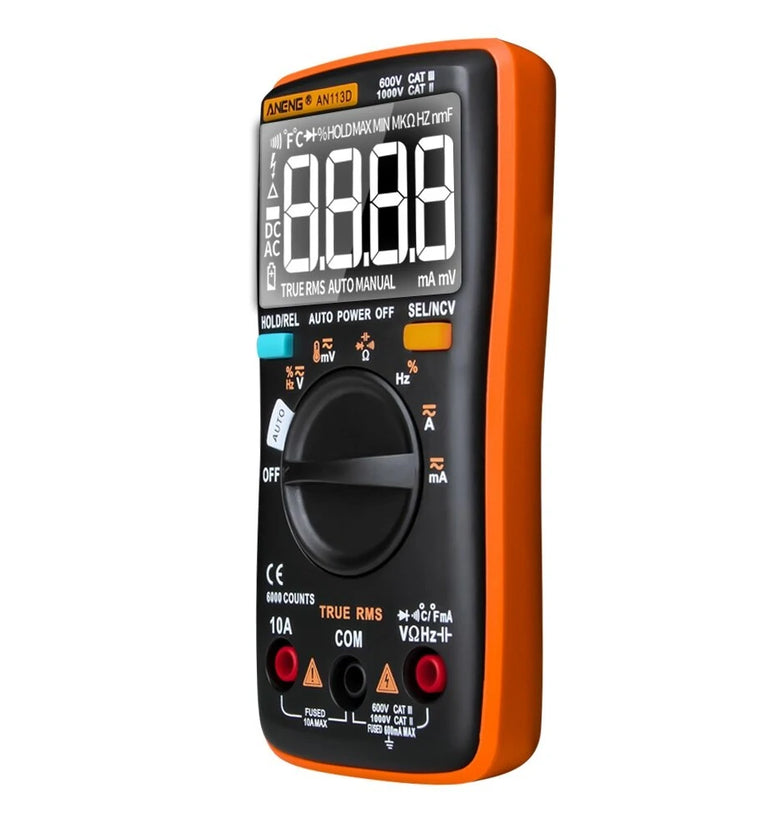 • ANENG AN113D Intelligent Auto Measure True- RMS Digital Multimeter 6000 Counts Resistance Diode Continuity Tester Temperature AC/DC Voltage Current Meter Upgraded from AN8002