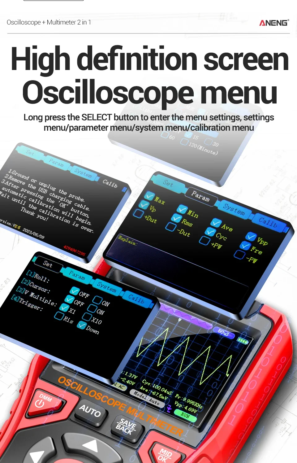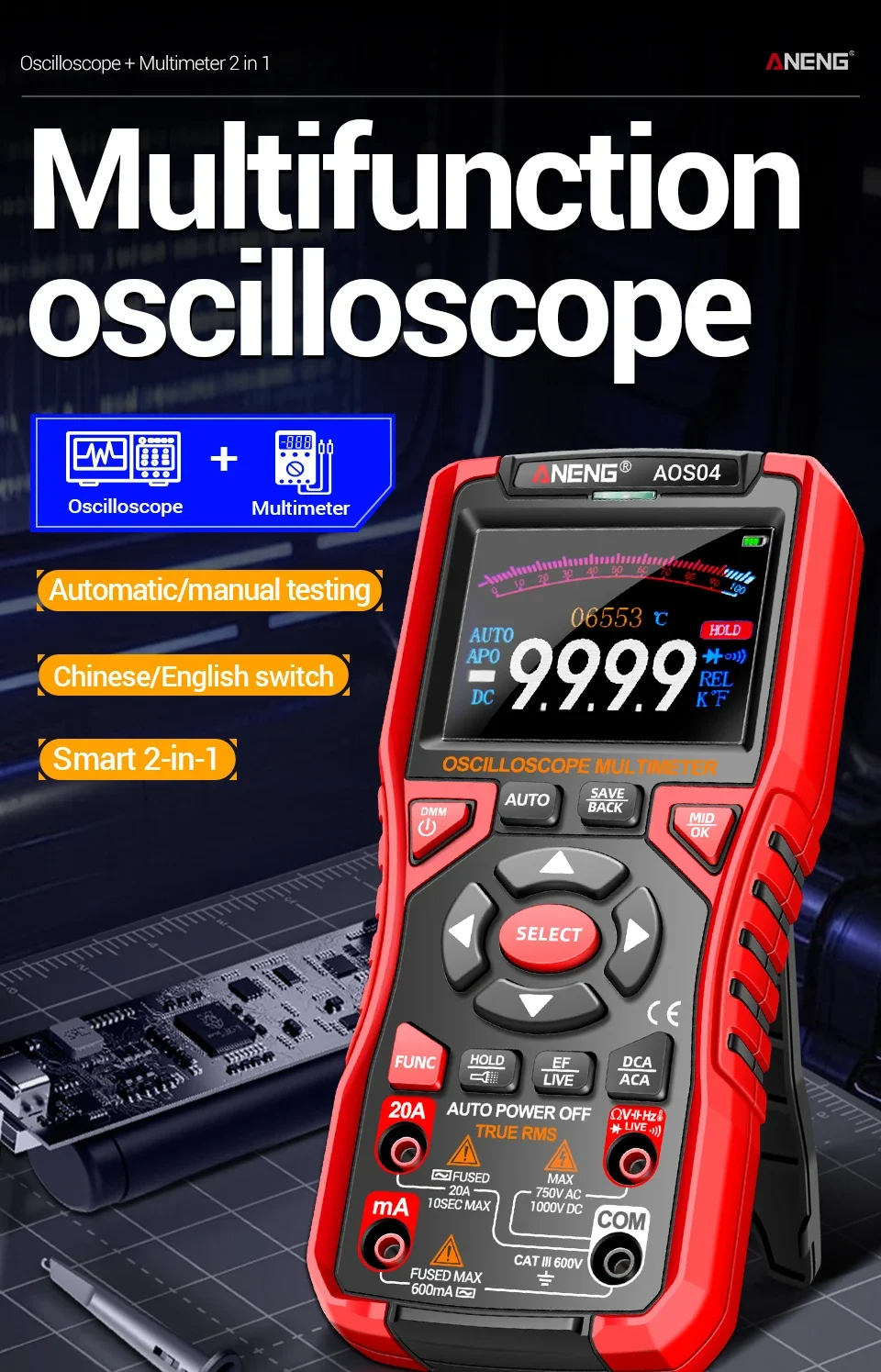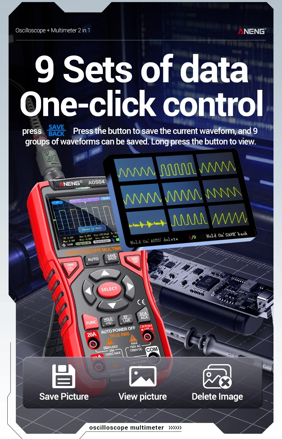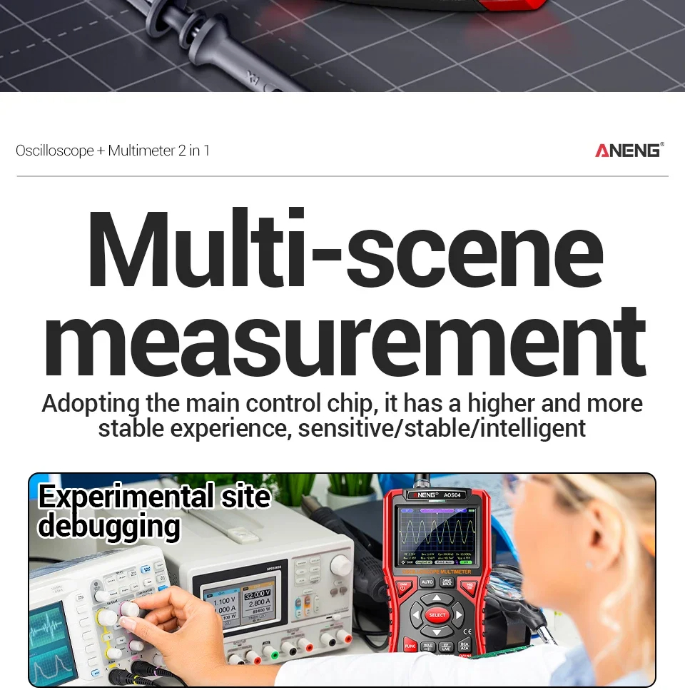 2.Dual Functionality: Combines a smart multimeter with a digital oscilloscope, enabling triple-display functionality for electrical parameters and waveform analysis in one tool.