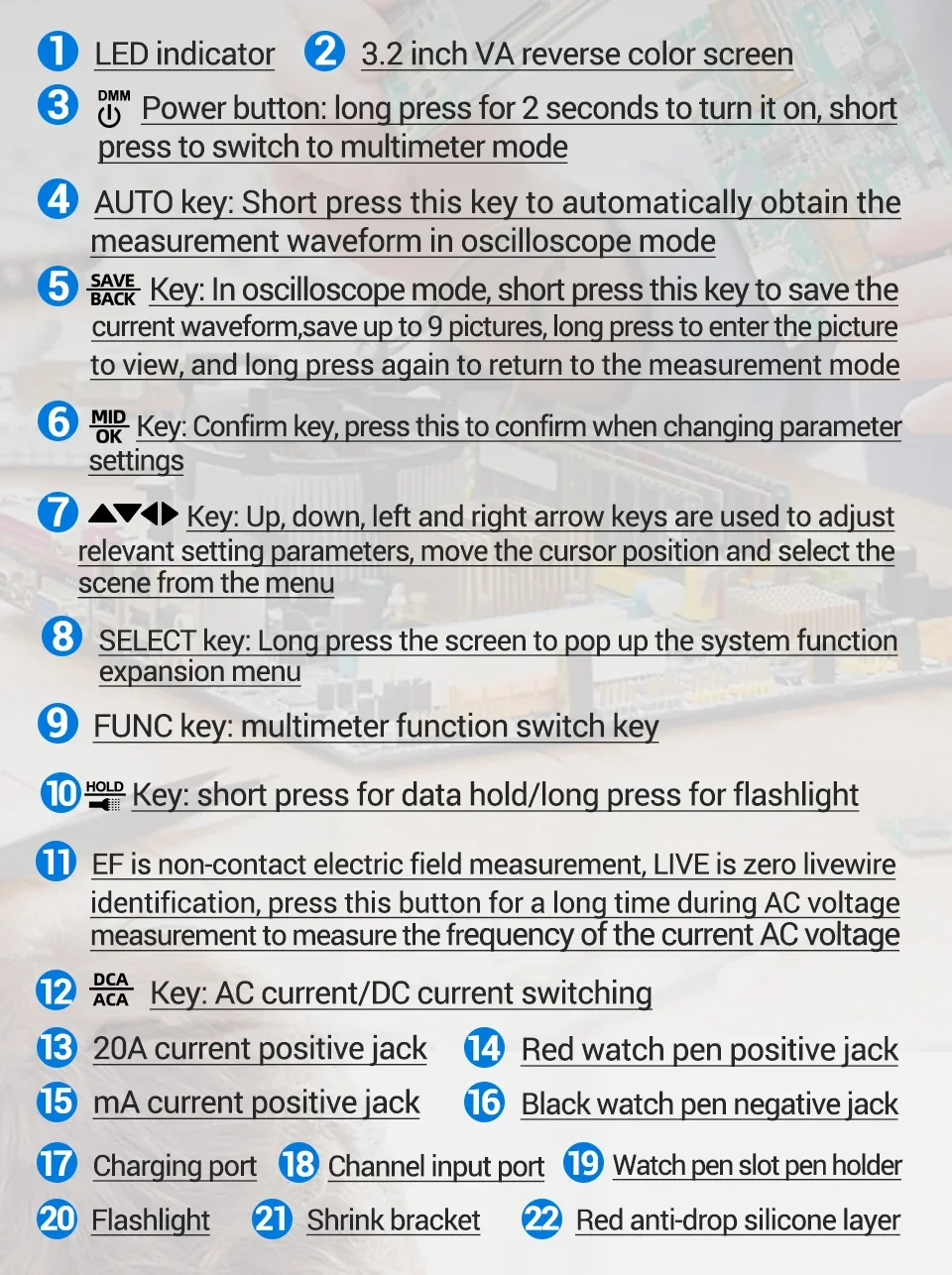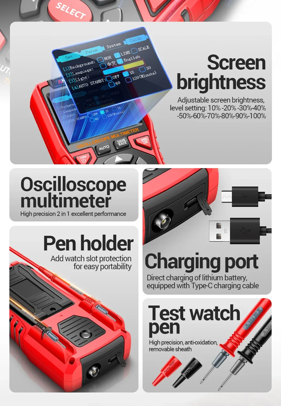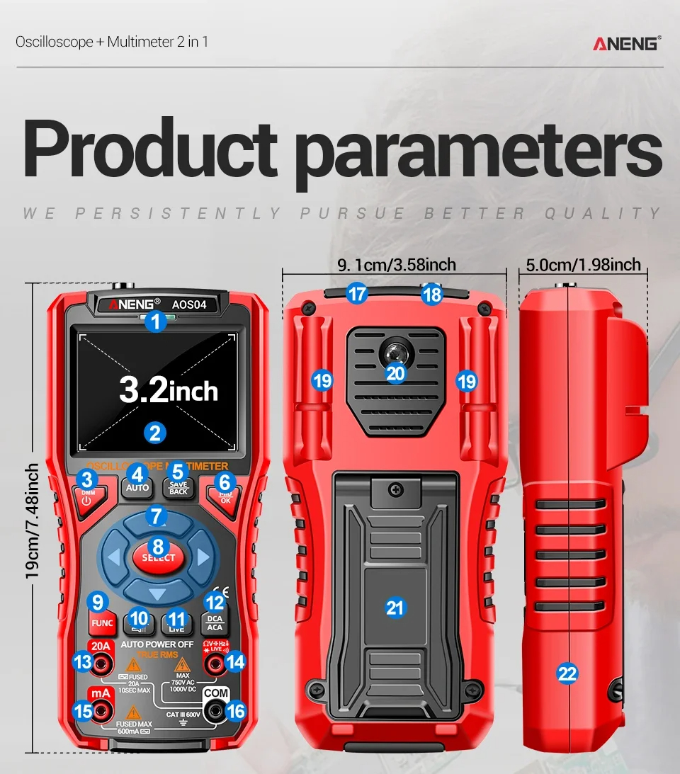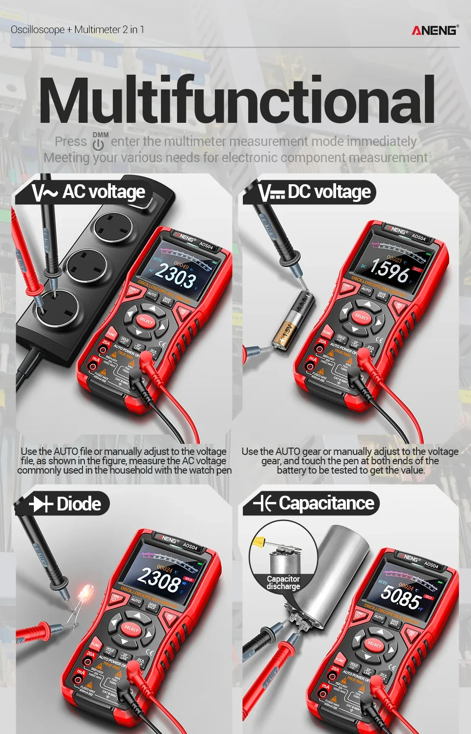 2.Dual Functionality: Combines a smart multimeter with a digital oscilloscope, enabling triple-display functionality for electrical parameters and waveform analysis in one tool.