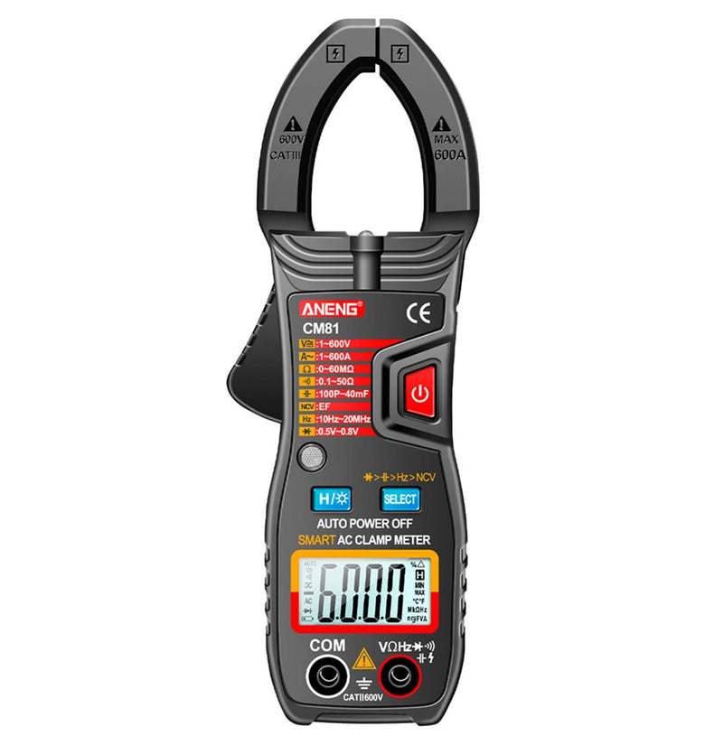 • ANENG CM81 6000 Counts Auto Range NCV Digital Clamp Meter DC/AC Voltage Current Resistance Frequency Capacitance Tester