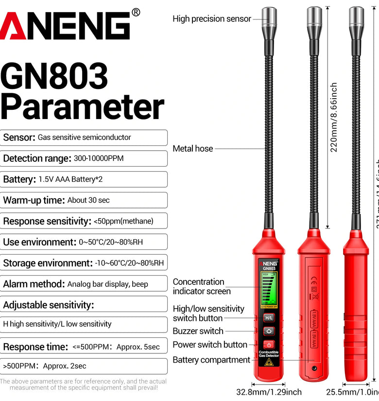mso-bidi-font-family:'Times New Roman';font-size:10.5000pt;mso-font-kerning:1.0000pt;'>High Sensitivity Sensor: The ANENG GN803 Combustible Gas Leak Detector is equipped with a gas-sensitive semiconductor sensor with a detection range of 300-10000PPM, ensuring highly precise measurements of potentially harmful gases.mso-bidi-font-family:'Times New Roman';font-size:10.5000pt;mso-font-kerning:1.0000pt;'>