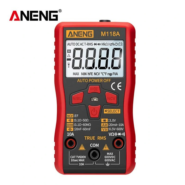 • ANENG M118A Digital 6000 Counts Auto Range True Rms Mini Multimeter Transistor Meter with NCV Data Hold Flashlight