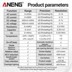 mso-bidi-font-family:'Times New Roman';font-size:10.5000pt;mso-font-kerning:1.0000pt;'>Wide Range of Functions: ANENG PN128 performs a multitude of measurements including AC/DC current, AC/DC voltage, resistance, capacitance, frequency, and temperature, making it a comprehensive tool for all your electrical measurement needs.mso-bidi-font-family:'Times New Roman';font-size:10.5000pt;mso-font-kerning:1.0000pt;'>