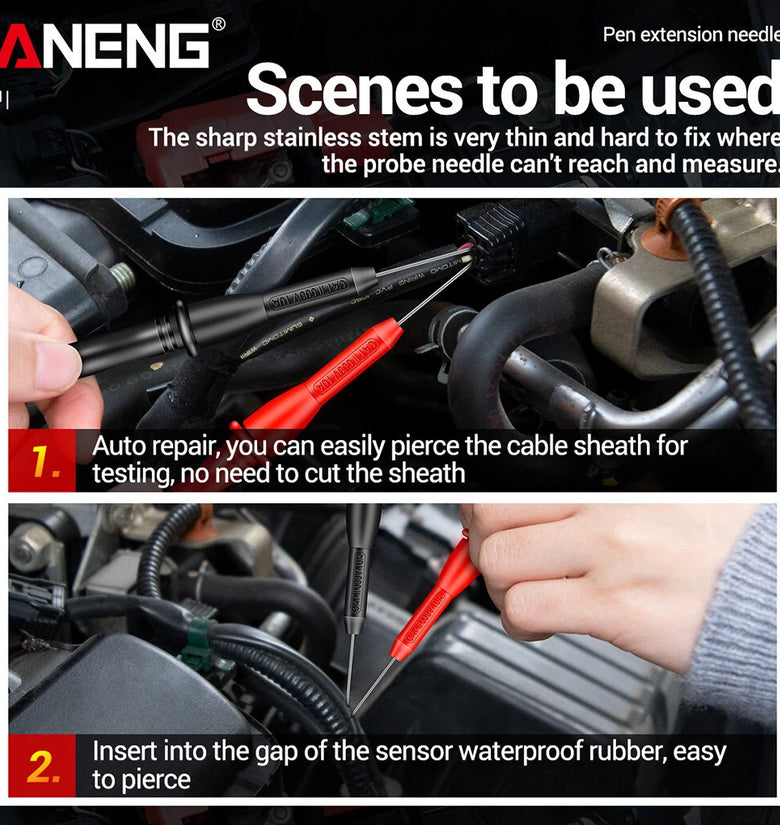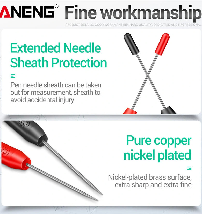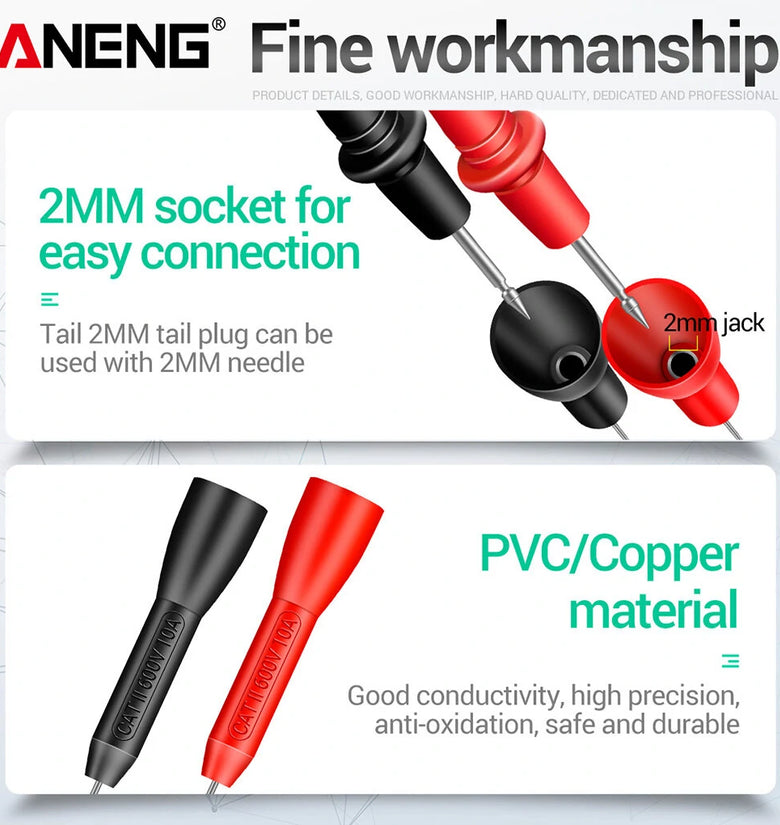 Features:Well crafted: This 2mm piercing multimeter probe tip is designed with good contact, and has an insulation layer on the pin.Easy to use: This multimeter needle extension pin is suitable for 2mm diameter probe needles, and can be used directly.Sturdy and strong: Mainly made of brass and stainless steel, this multimeter probe needle is durable, anti-rust, and not easy to break.Portable: With a small size, this multimeter probe conversion pin is convenient to carry and won't take much space, easy to store.Spare parts: With good performance and long lifespan, this tester probe needle is a nice choice to replace an old or damaged one.Specification:Material: Brass, stainless steel.Color: Red and black.Interface diameter: Approx. 2mm/0.08 inch.Length: Approx. 8.5cm/3.35 inch.Package Included:2 x Multimeter ProbesNote:There might be a bit of color distortions due to different computer resolutions.There might be a slight error due to different hand measurements.