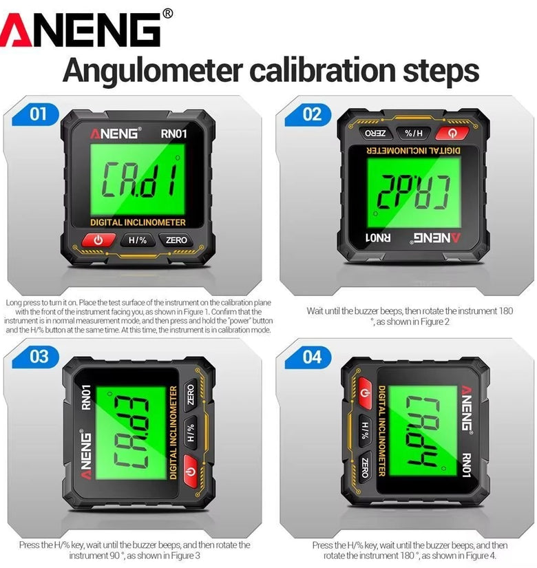 • ANENG RN01 Digital Angle Gauge Magnetic Protractor Inclinometer 360 Degree Level Measurement Device LCD Display with Backlight Portable Design