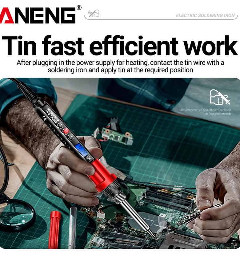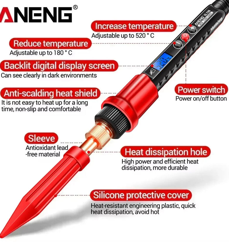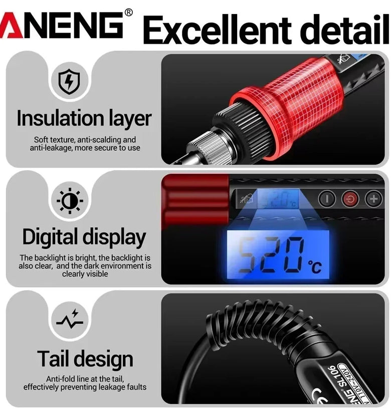 • ANENG SL106 Electric Soldering Iron 60W Adjustable Temperature 180-520 Digital Display Ceramic Heating Core 110V/220V