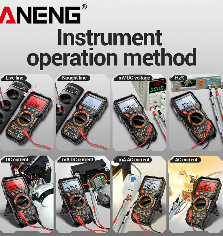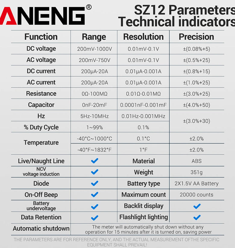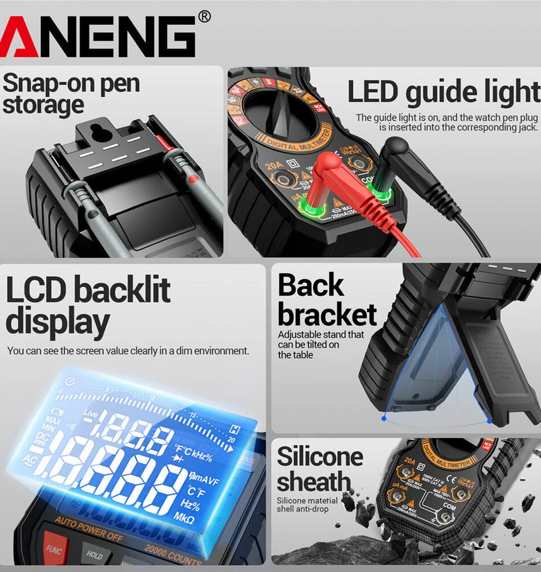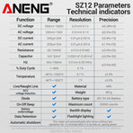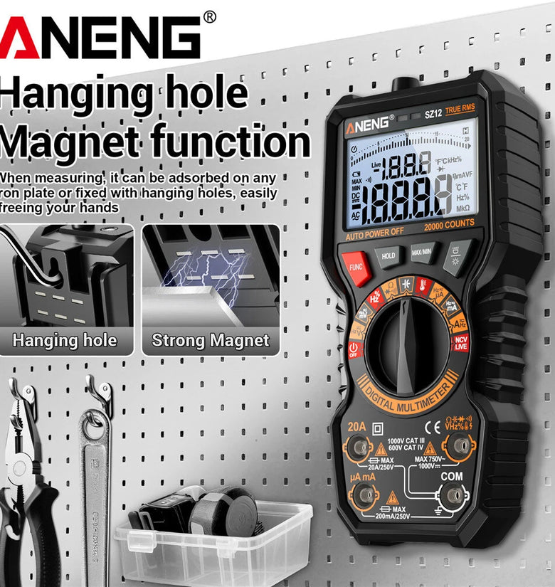• ANENG SZ11 SZ12 Pro Digital Multimeter 20000 Counts True RMS AC DC Voltage Current Resistance Capacitance Frequency Temperature Tester NCV Live Wire Detection Backlit LCD Auto Shutdown