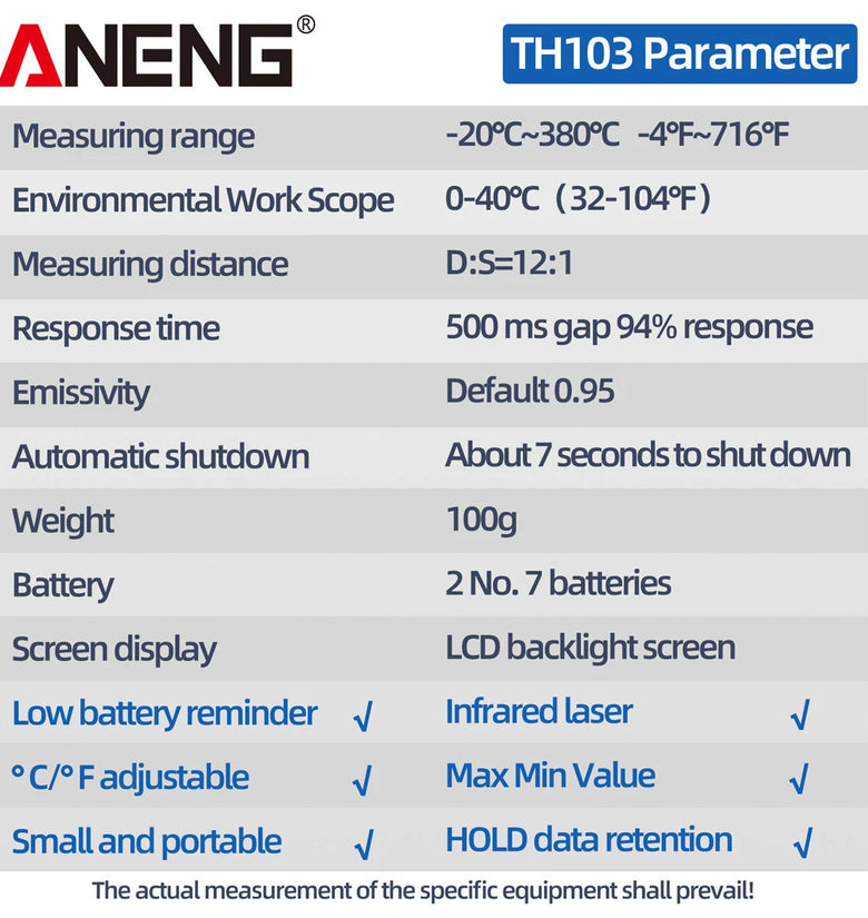mso-bidi-font-family:'Times New Roman';font-size:10.5000pt;mso-font-kerning:1.0000pt;'>1 x ANENG TH103 Infrared Thermometer (Batteries not included)mso-bidi-font-family:'Times New Roman';font-size:10.5000pt;mso-font-kerning:1.0000pt;'>