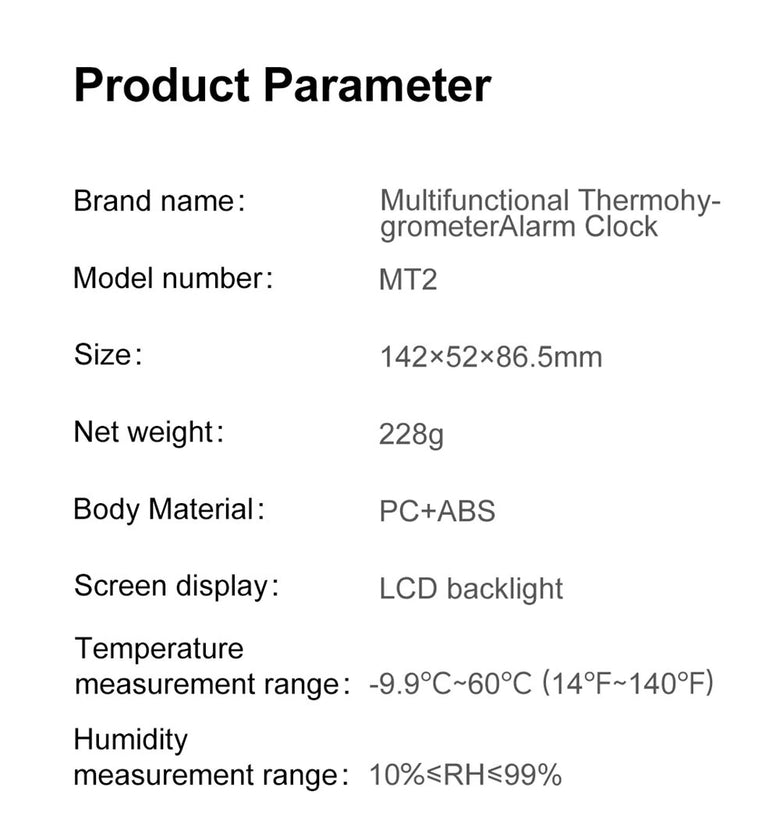 Brand name: Multifunctional Thermohygrometer Alarm Clock