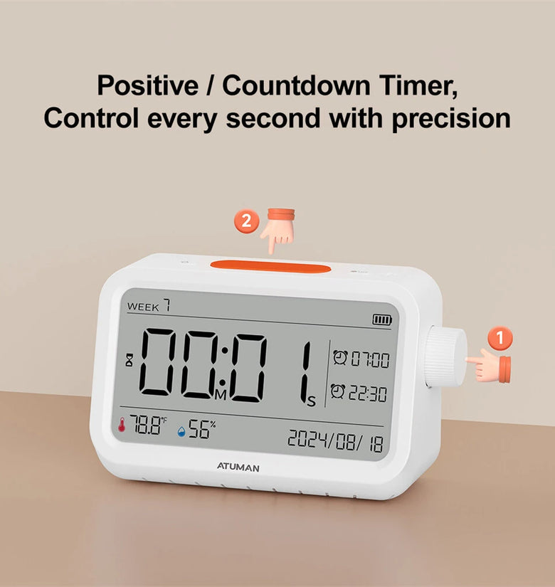 Atuman MT2 3in1 Multifunctional Hygrometer Alarm Clock Timer -9.9C~60C LCD Display Temperature Humidity Monitor Accurate Environmental Monitoring