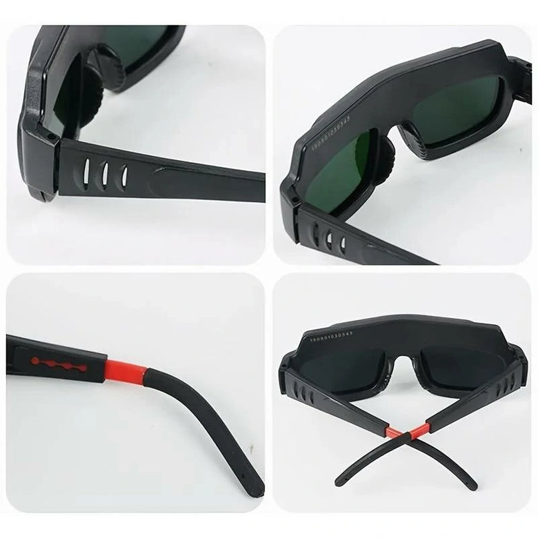 Features:It will not cause damage to the eyes. When the arc light is generated, the dimming screen will darken from the normal state, and when the arc light disappears, the dimming screen will return to the normal state.The mirror has a scratch-resistant coating to protect eyes. Prevent strong impact and increase lens strength.Solar powered, no battery required, high-sensitivity detection head, high working efficiency.Convenient to use: Legs can adjust the length, automatic variable light lenses lightweight and convenient, with impact resistance, the use of more secure and assured.Widely applications: Easy and safety to operate, light weight design; Applicable to electric welding, gas shielded welding, argon arc welding, electric saw, welding, etc.Specifications:Colour: BlackMaterial: PP