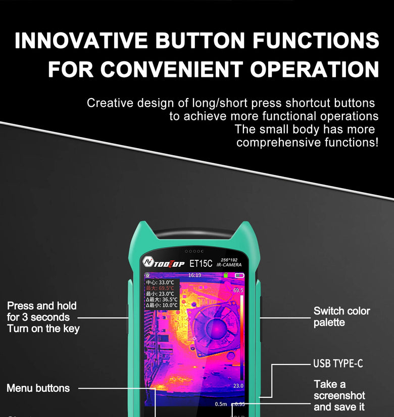 • AV TOOLTOP ET15C Thermal Imager 256x192 Pixels -20C to +550C 3.5 Inch Screen High Resolution Portable Thermal Imaging Camera