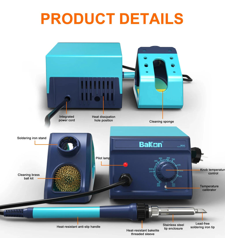 BK969 90W Soldering Iron Station with Ceramic Heating Core Rapid Fast Temperature Recovery Precise Control Safety Earth-Leakage Protection Ergonomic Handle for Efficient Accurate Welding