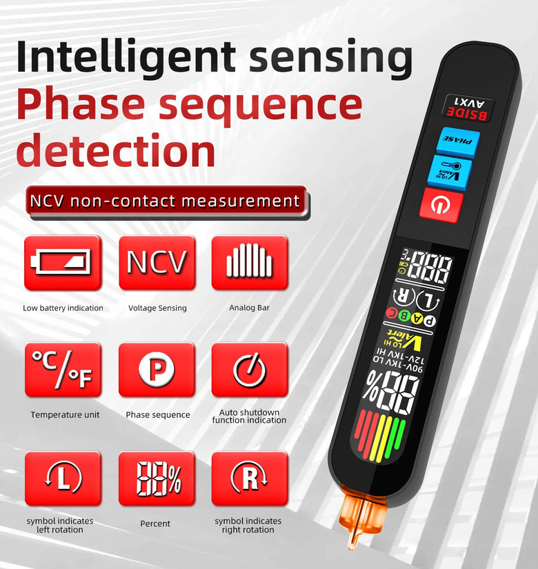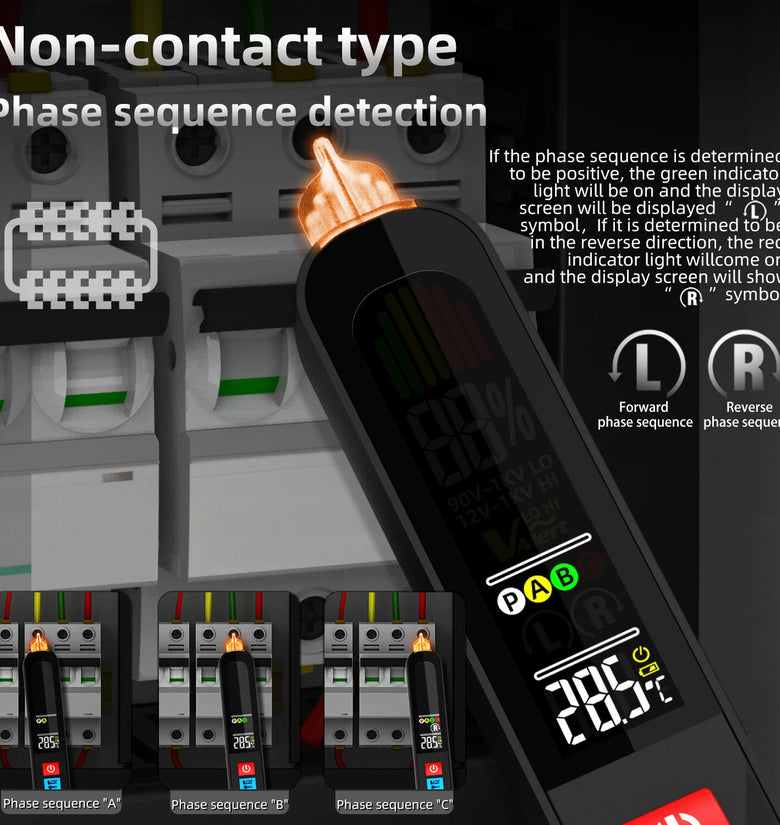 Quickly identifies phase sequene without the need for physical contact, making it a safer and more convenient tool for electrical professionals.