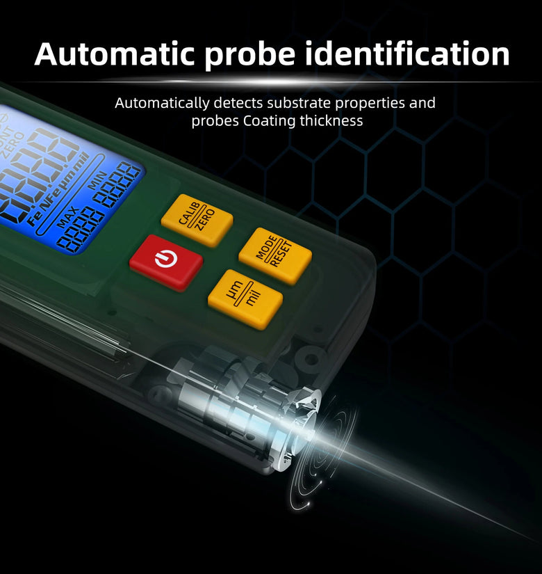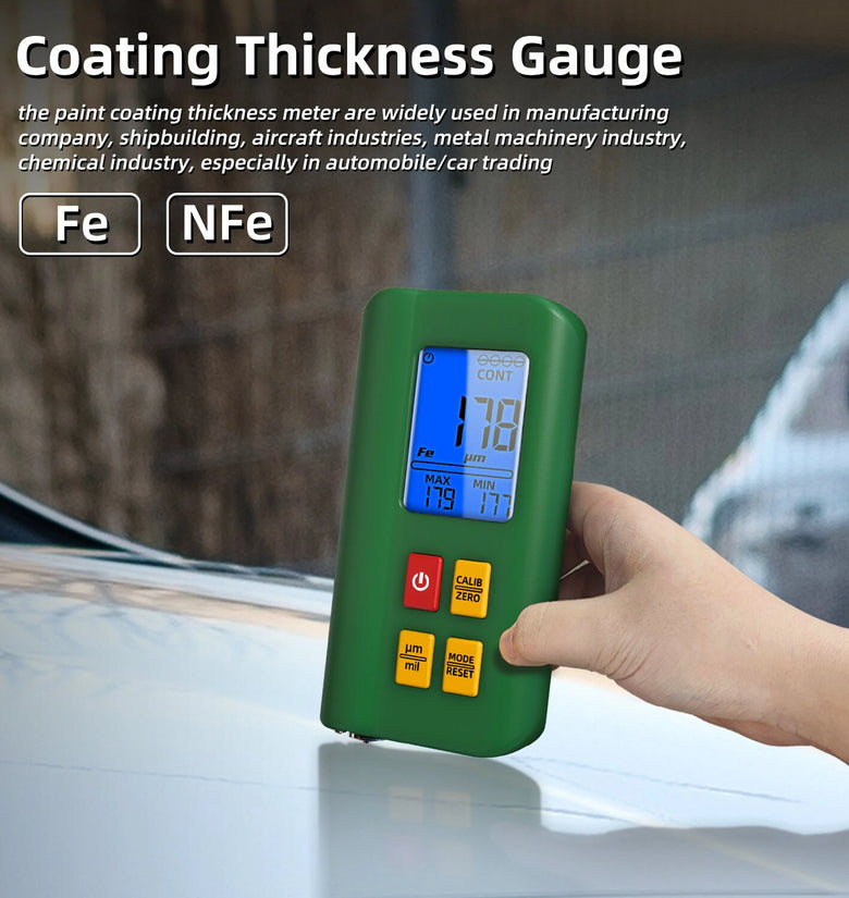 mso-bidi-font-family:'Times New Roman';font-size:10.5000pt;mso-font-kerning:1.0000pt;'>[Fe-Probe/Magnetic Induction]: The car paint mill thickness gauge can measures the thickness of non-magnetic coating layers on magnetic substrate. Such as (aluminum, chrome, copper, enamel, rubber, paint) on magnetic substrate (steel, iron, alloy and magnetic stainless steel).mso-bidi-font-family:'Times New Roman';font-size:10.5000pt;mso-font-kerning:1.0000pt;'>