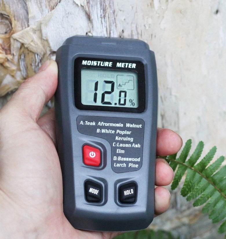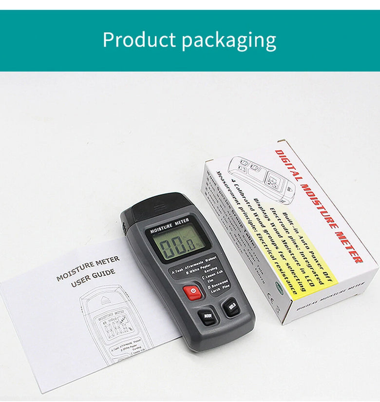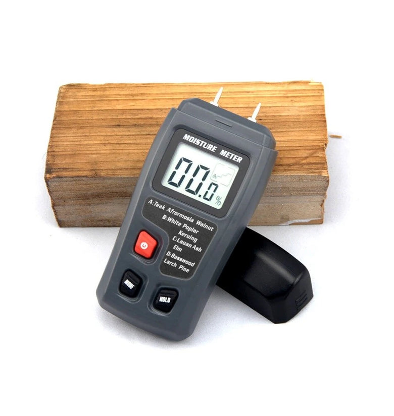 ● Large LCD display of wood moisture value.