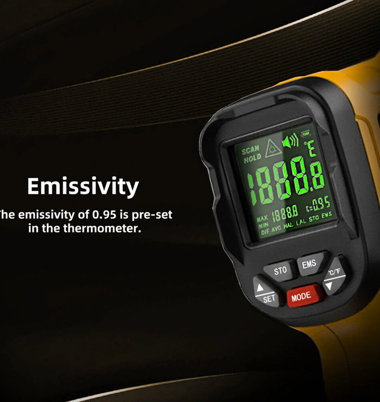 ►【NOTE】The thermometer can't measure the internal temperature of an object; temperature readings from this devices are inanimate objects, the measured temperature for humans or animals will not be correct