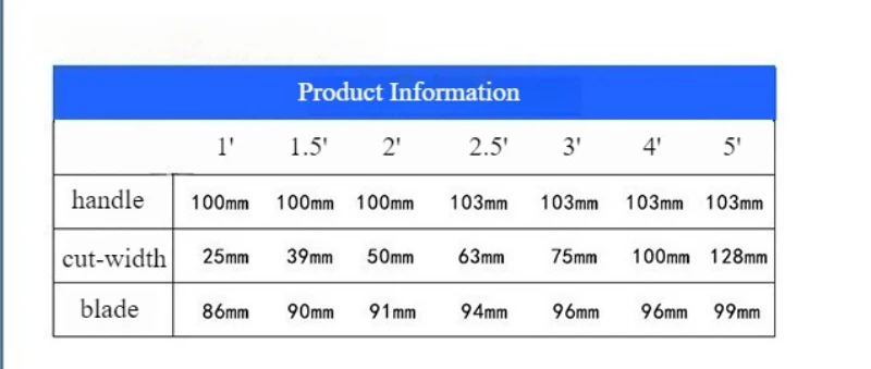 Blade Width Sizes: 1', 1.5', 2', 2.5', 3', 4', 5'