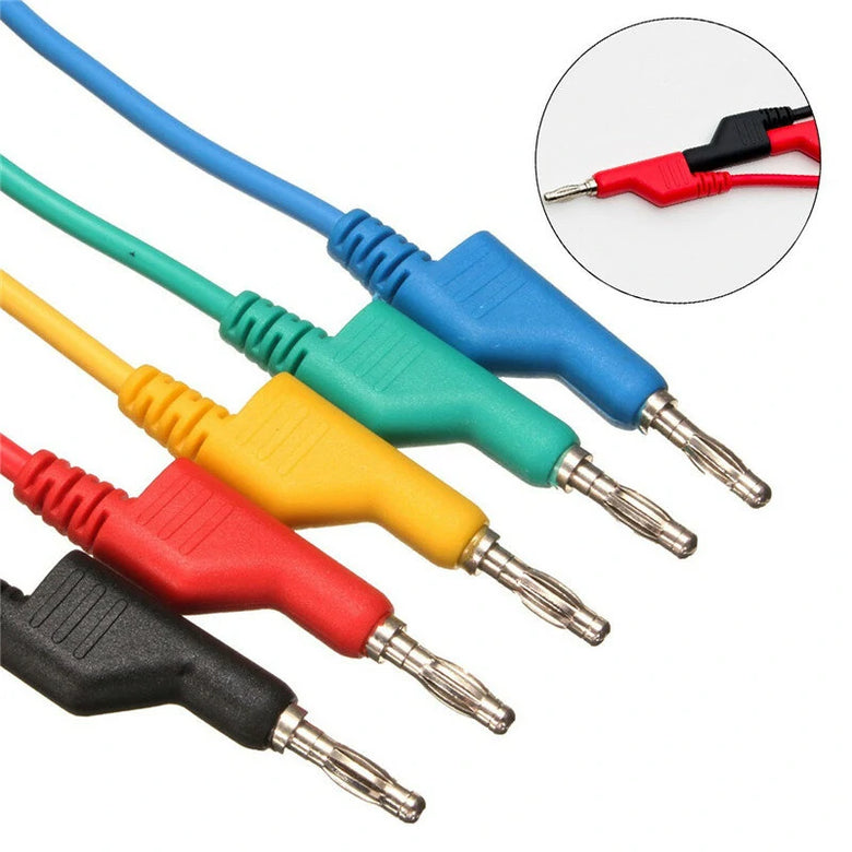 DANIU 5Pcs Silicone Banana Plug to Crocodile Alligator Clip Test Probe Lead Wire Cable