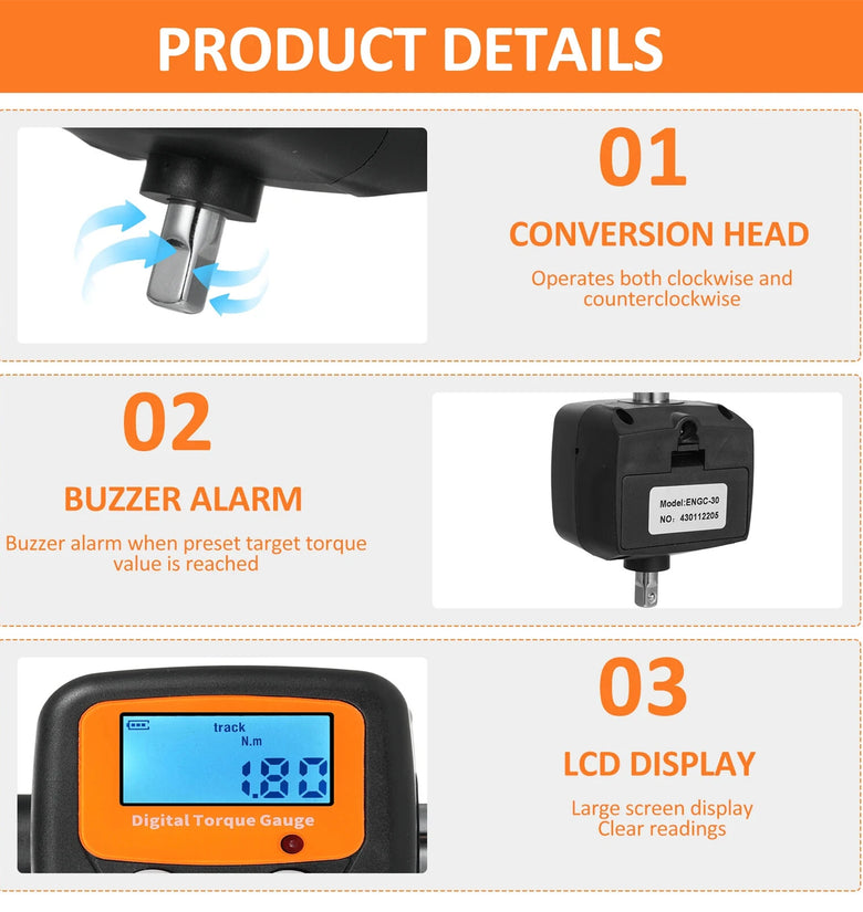 3. ILLUMINATED LCD Display: Clear and easy-to-read backlit display allows for effortless torque measurement reading, even in low-light conditions or during nighttime projects.