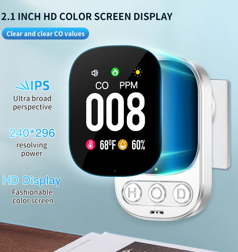 The 2.1-inch screen provides clear and immediate carbon monoxide concentration readings, temperature, and humidity levels for easy monitoring.
