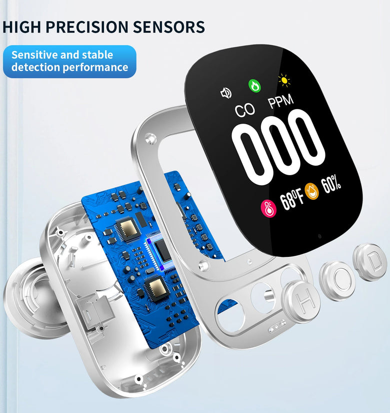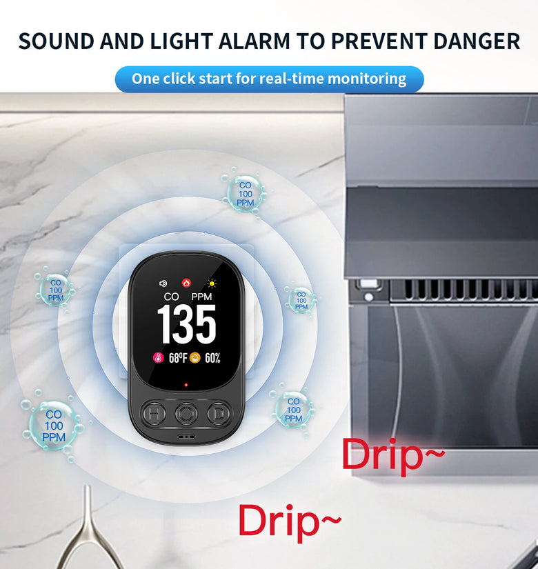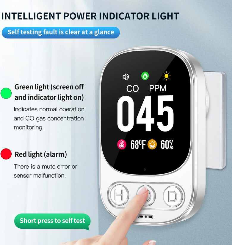 Equipped with a color-coded LED system and sound alarms to indicate CO levels, ensuring users are promptly warned of abnormal conditions.