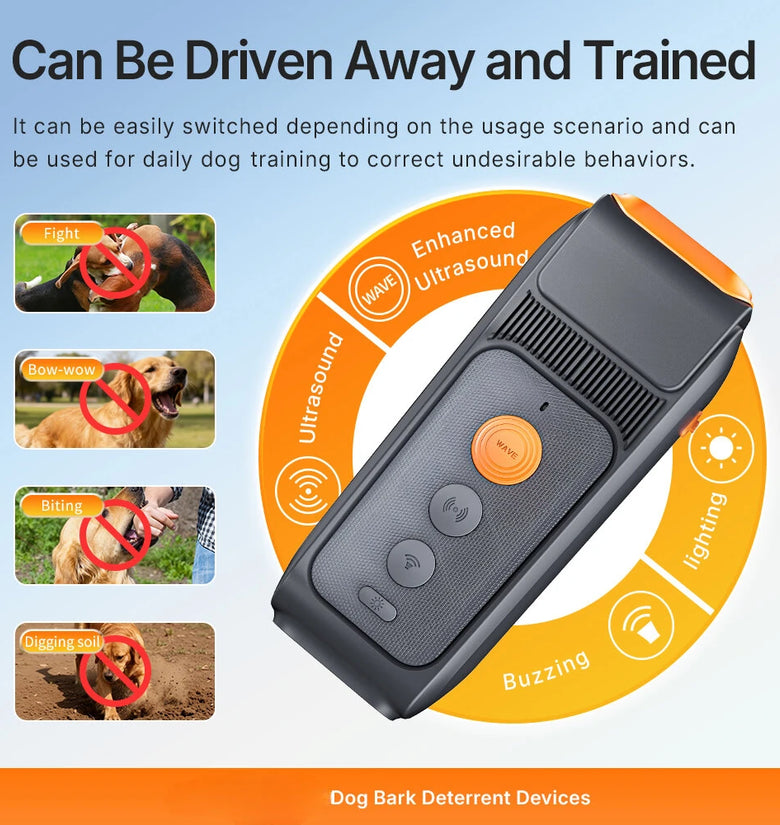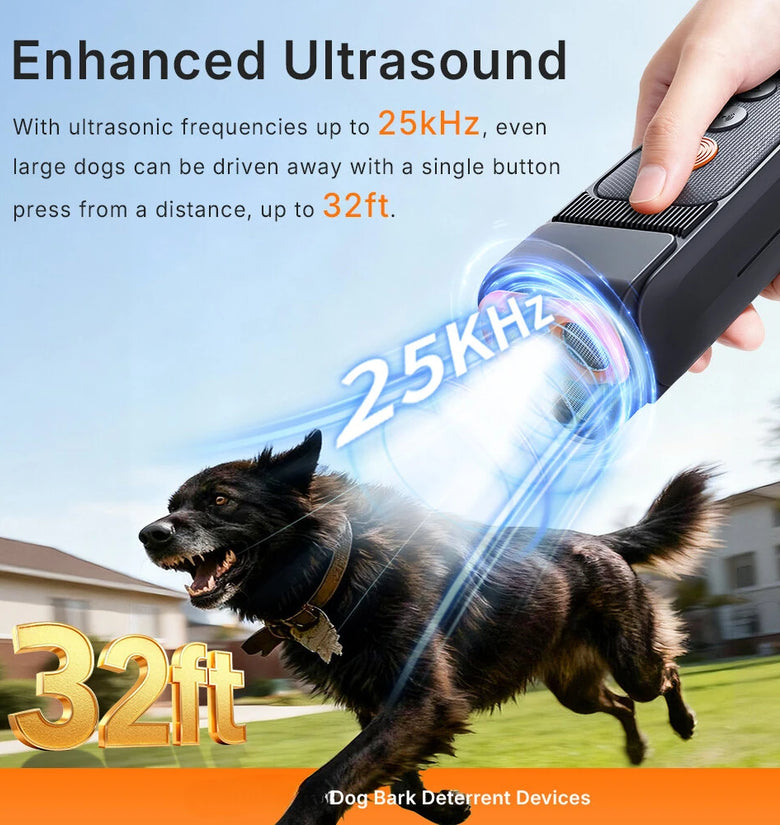 Equipped with three ultrasonic emission heads, this device maximizes sound wave effectiveness to deter excessive barking, ensuring reliable performance in broader areas.