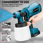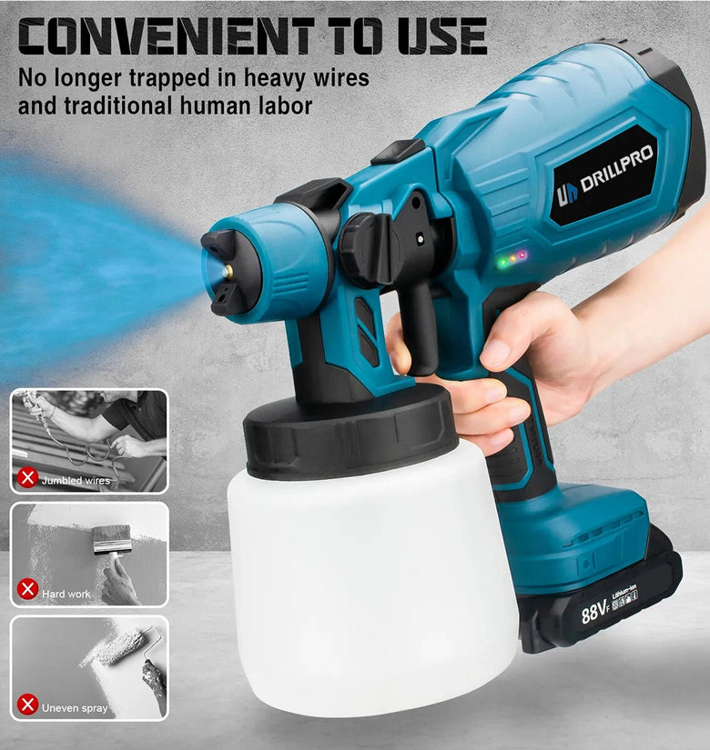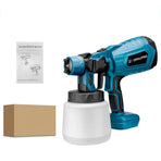 1000ML Cordless Electric Spray Gun Portable Household Paint Sprayer Auto Furniture Steel Coating Airbrush For Mak 18V Battery Features:210 Watts paint sprayer provides a precise spray pattern, creating the smooth and superior finish. With 800ml high-capacity container, it will be your best electric paint sprayer for fence, deck, ceiling, tables, chairs and house interior exterior walls3 different spray patterns :horizontal, vertical and circular for most painting projects.Adjustable flow control - Regulate your paint output by adjusting the flow control knob on the sprayer to get different paint output, suitable for edges, corners and broad interior surfaces of various work and DIY projects.Easy to use & wash - This paint sprayer is user-friendly,easy assemble and easy spraying.With packaged cleaning attachments,you can clean it easily and efficiently.Perfect for all painting projects - as they strain out particles down to 190 microns. and work for all types of solvent or water-based paints, stains, varnishes, epoxy, latex and other liquids. So before use this paint sprayer, please make sure to dilute the paint according to the instruction.