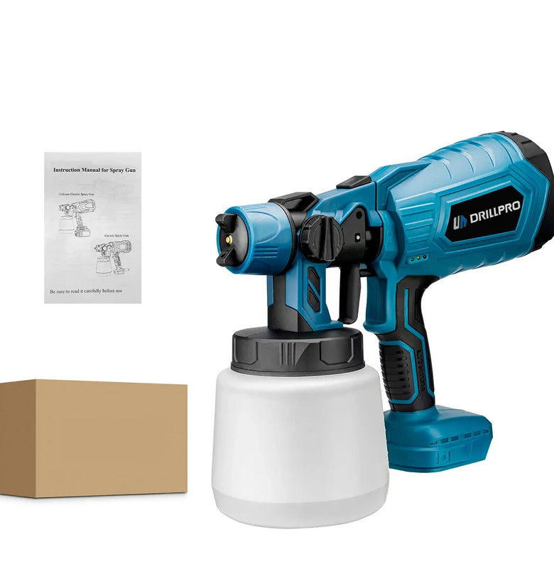 The spray gun should be cleaned in time after spraying is completed to prevent the paint or coating from blocking the nozzle holes and suction pipes after drying, thereby extending the service life of the machine and making it easier to use next time. When cleaning the paint, please spray it with diluent first, and then spray it with clean water for about 30 seconds to 1 minute to completely remove the paint in the valve core.Specifications:Brand: DrillproMotor: 210WMaximum Flow: 200ml/minMaximum Viscosity: 8-12sCapacity: 1000MLSpeed: 38000RPMColor:BluePower Supply: BatteryBattery Quantity: 0Plug: according to your countryCompatible Battery: for Mak 18V BatteryThe machine Adapted for 18V Mak battery√ compatible for 18V B series lithium battery,such as BL1850B(197285-8),BL1840B(197270-1),BL1830B(197602-2),BL1430B(197618-7),BL1820B(197487-6);√ compatible for BL1850,BL1840,BL1440(196391-6),BL1415(194560-3),BL1815N(196781-3);× NOT compatible for G Series battery such as BL1813G(196663-9) BL1413G(196882-7) BL1415G BL1430G BL1815G and so on× NOT compatible for 18v Ni-CD battery such as 1822(194465-7)Package included:1 x Paint Sprayer(No battery no plug)1 x Manual1 x BoxThis package does not contain a battery charger, please make sure you have the right battery at home.Detail Pictures: