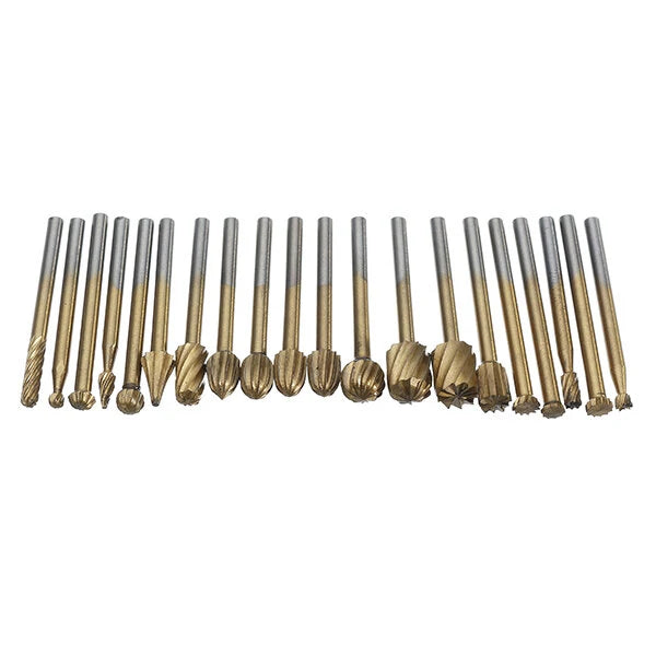 • Drillpro 20Pcs Titanium Coated Rotary File Cutters HSS Mini Burr Wood Working Milling Carving Rasp Drill Bits