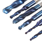 Drillpro 6pcs M3-M10 Combination Drill Tap Bit Set HSS 6542 Blue Nano Coated Deburr Countersink Drill Bits