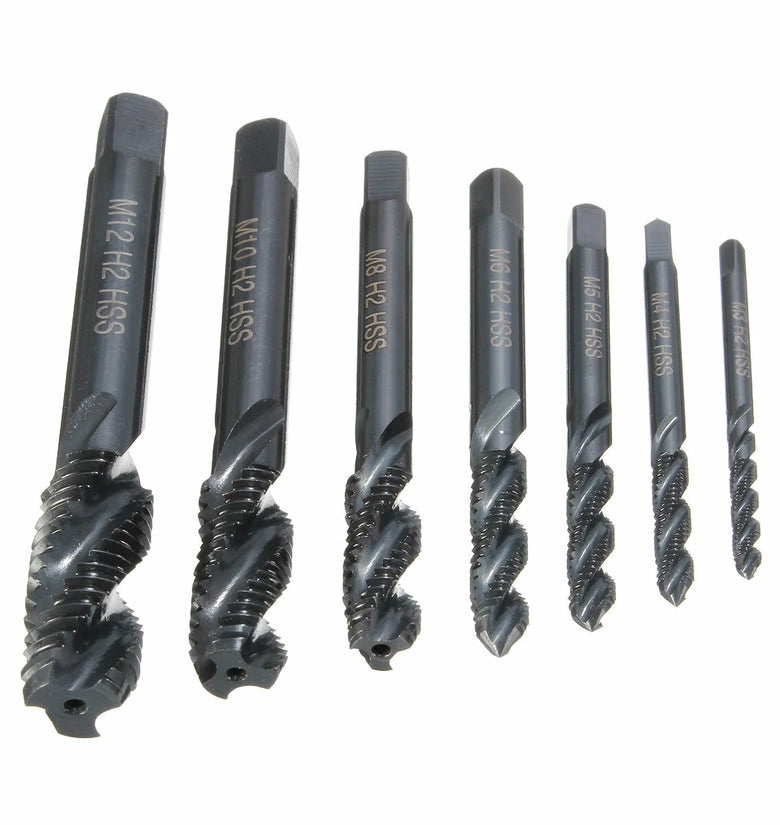 7pcs M3*0.5, M4*0.7, M5*0.8, M6*1.0, M8*1.25, M10*1.5, M12*1.75 HSS Nitriding Coated Metric Right Hand Spiral Screw Thread Tap set