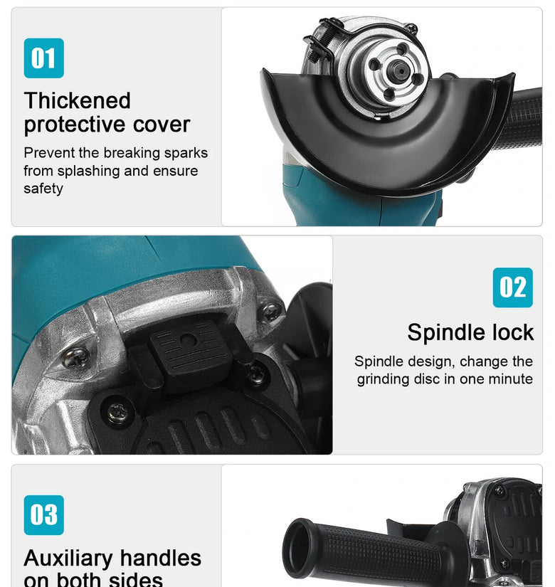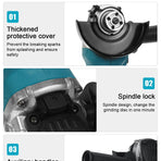 • Drillpro Electric Brushless Cordless Angle Grinder M10 125mm Cut for Mak 18V Battery